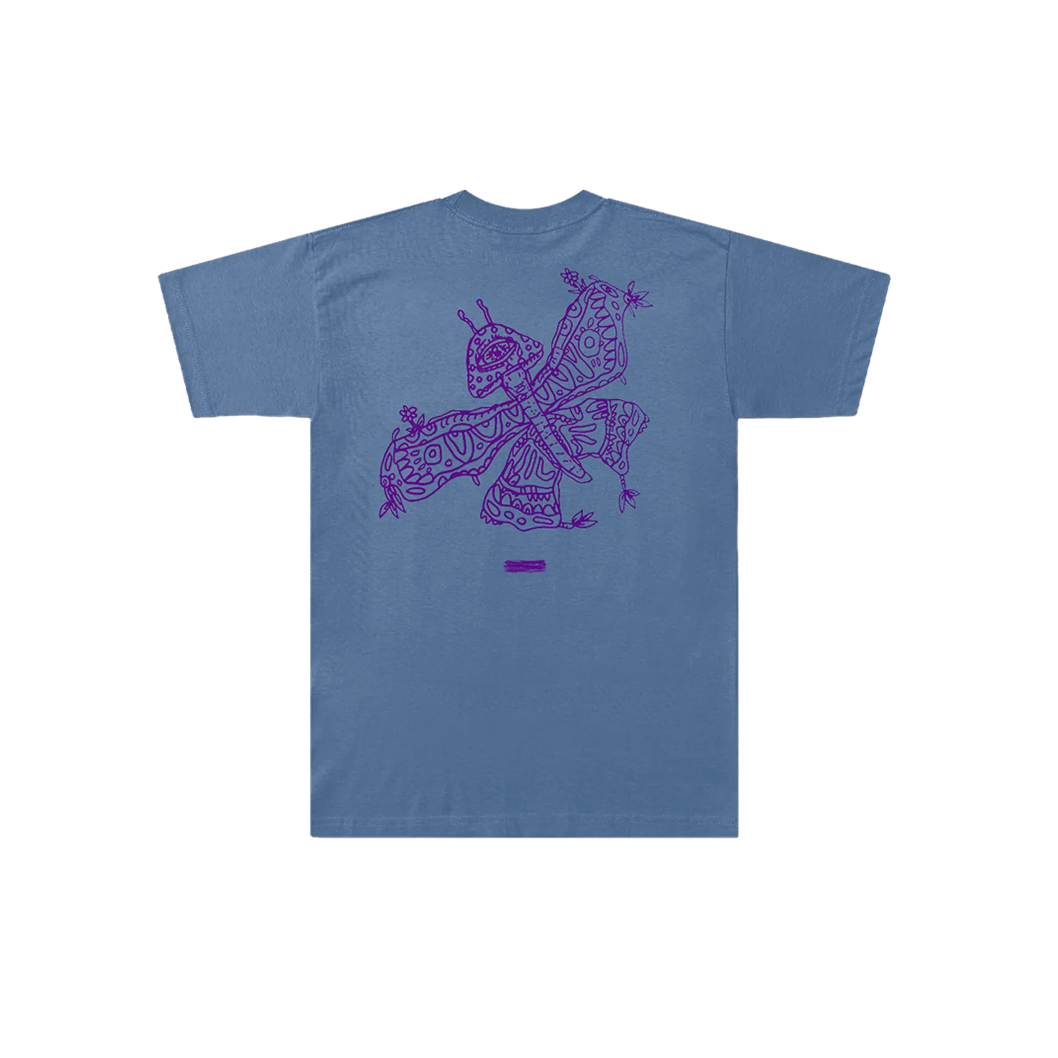 100% cotton, enzyme washed t-shirt in blue, featuring a centred Subtract chest print and large Mushroom Butterfly artwork on the back.